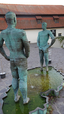 Kilka metrów dalej znajduje się muzeum Franza Kafki. Zanim jednak tam dotrzemy ujrzymy na dziedzińcu rzeźbę Davida Černego z 2004 przedstawiającą dwóch mężczyzn, stojących naprzeciw siebie i oddających mocz do basenu w kształcie Czech .